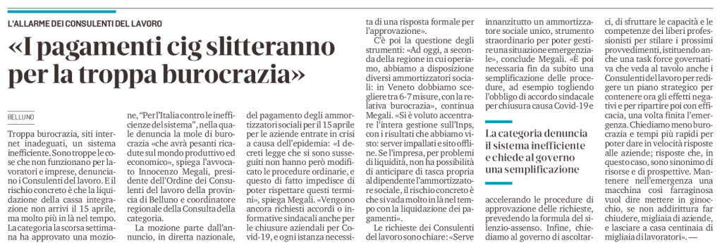 La Consulta dei Consulenti del Lavoro del Veneto ha messo in luce tutti i problemi e le falle del sistema di gestione degli ammortizzatori sociali in questo momento d’emergenza.
