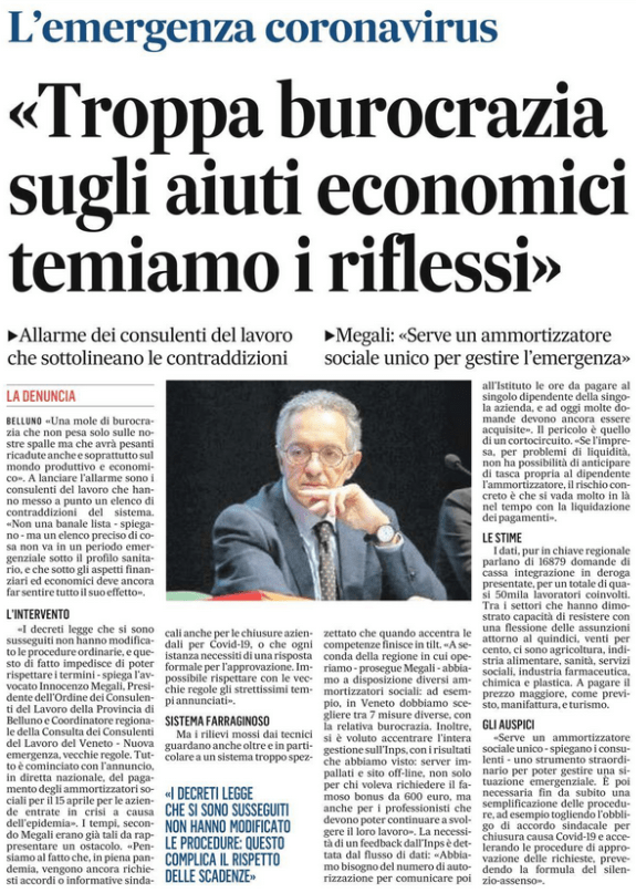 Coronavirus, vecchie procedure per nuova emergenza. La denuncia del presidente dei consulenti del lavoro Innocenzo MegalI